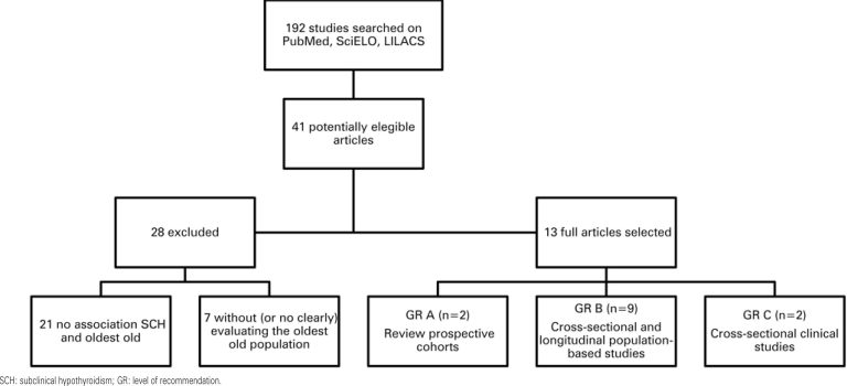 To assess studies that evaluate the relation between serum thyrotropin concentration, very old subjects, and their events. We searched the PubMed, SciELO, and LILACS databases for articles published between 2004 and 2012. Our search was restricted to studies involving humans aged 65 years or older, and written in English, Spanish, or Portuguese. Studies that evaluated the association between elevated serum thyrotropin concentration among elderly subjects with subclinical hypothyroidism were chosen since at least in part they included a subpopulation of […]