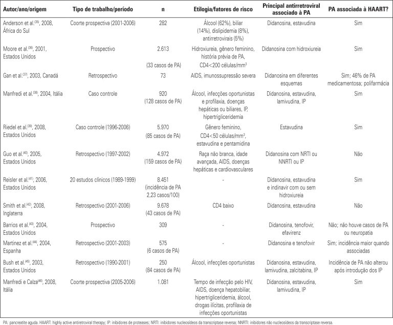In HIV-seropositive individuals, the incidence of acute pancreatitis may achieve 40% per year, higher than the 2% found in the general population. Since 1996, when combined antiretroviral therapy, known as HAART (highly active antiretroviral therapy), was introduced, a broad spectrum of harmful factors to the pancreas, such as opportunistic infections and drugs used for chemoprophylaxis, dropped considerably. Nucleotide analogues and metabolic abnormalities, hepatic steatosis and lactic acidosis have emerged as new conditions that can affect the pancreas. To evaluate the […]