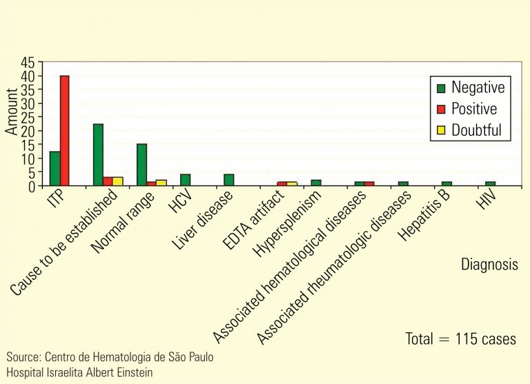 ABSTRACT Objective: To identify antiplatelet antibodies by flow cytometry (direct method) in patients with thrombocytopenia. Methods: Between January 1997 and March 2004 a total of 15100 patients were referred to the Centro de Hematologia de São Paulo for hematological investigation of several diagnoses (anemia, leukopenia, thrombocytopenia, coagulation abnormalities, adenomegaly, leukemia and others). Of those, 1057 were referred because of thrombocytopenia and were divided into two groups: Group Idiopathic thrombocytopenic purpura, with no identifiable cause; and Group Other thrombocytopenia, which included […]