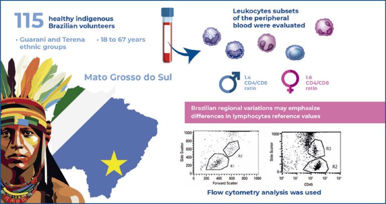 Highlights The relative medians of CD3+, CD4+, and CD8+ T cells were significantly higher in women than in men in a healthy indigenous population. Demographic and ethnic diversity of the Brazilian population can be associated with quantitative modifications in the immunologic cells of healthy individuals. Objective: The establishment of reference values for a subset of leukocytes is common in clinical practice, and ethnic variations are strongly associated with disease development. In Brazil, indigenous people are vulnerable to infections, and few […]