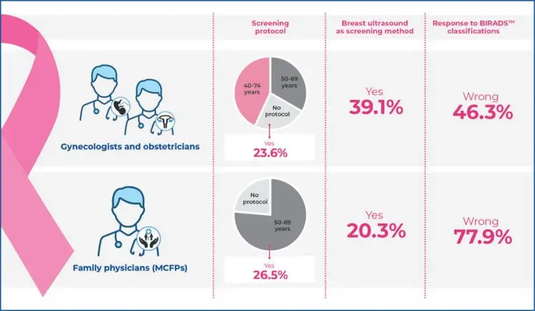 Highlights Variability in screening protocols: only 42.8% of gynecologists and obstetricians follow the 40-74 years protocol, while 76.6% of family physicians follow the 50-69 years protocol. High rate of incorrect BIRADS™ interpretation: there were 46.3% incorrect responses among gynecologists and obstetricians and 77.9% among family physicians, highlighting significant knowledge gaps. Misconception about breast ultrasound: 39.1% of gynecologists and obstetricians and 20.3% of family physicians incorrectly consider ultrasound as a screening method. Impact of inadequate training: inadequate training leads to improper […]