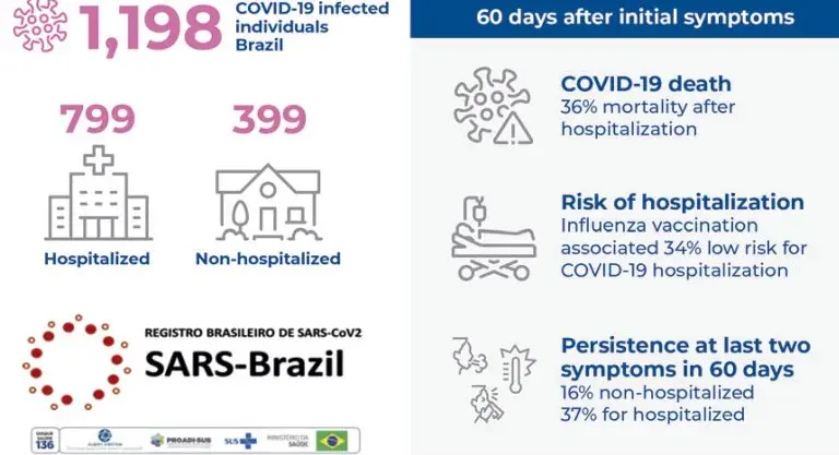 Highlights Previous influenza vaccination was associated with a reduced need for hospitalization after COVID-19 diagnosis. In 60 days of outpatient setting, four deaths occurred (three in the hospitalized and one in the non-hospitalized group). The persistence of more than two symptoms in 60 days was observed in 31.9% of patients. ABSTRACT Objective: To evaluate deaths, hospitalizations, and persistence of symptoms in patients with COVID-19 after infection in an outpatient setting during the first COVID-19 wave in Brazil. Methods: This prospective […]