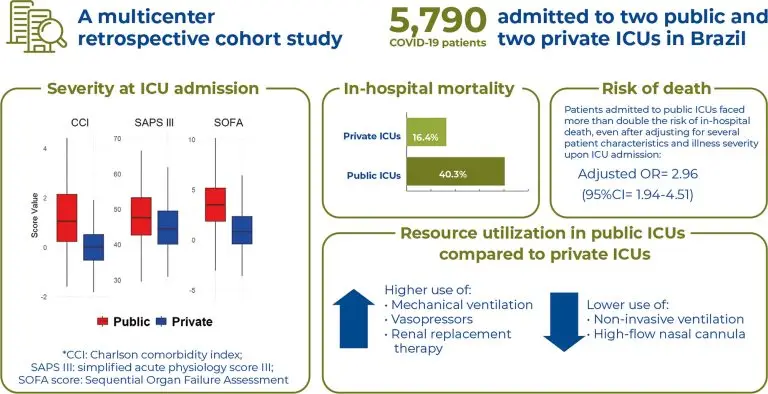 Highlights ■ Public intensive care unit COVID-19 patients presented with more comorbidities and higher severity at admission. ■ Public intensive care units required more invasive organ support (e.g., mechanical ventilation, vasopressors, and renal replacement therapy) but less non-invasive ventilation and high-flow nasal cannula than private intensive care units. ■ In-hospital mortality was higher in public intensive care units, with an increased risk of death even after adjusting for patient characteristics and illness severity at intensive care unit admission. ABSTRACT Objective: […]