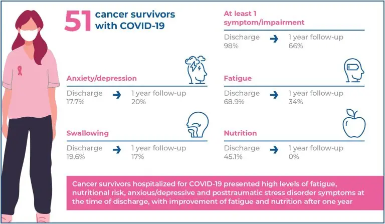 Highlights High fatigue and nutritional risk at discharge improved over one year in cancer survivors. Psychological symptoms, such as anxiety, depression, and posttraumatic stress disorder, remained prevalent for one year. 66% of patients had lasting symptoms or impairments after 12 months of follow-up. Nutritional risk was resolved in the following year. ABSTRACT Objective: Post-COVID symptoms are frequent and can be debilitating, particularly in individuals with cancer. However, their impact on this population remains unclear. This study aimed to prospectively assess […]