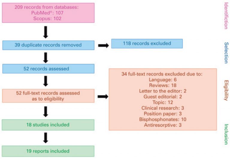 ABSTRACT To establish the profile of patients who developed antiangiogenic agent-related osteonecrosis of the jaws, and identify the treatments currently used in dental management. We searched the PubMed®/Medline® and Scopus databases using the words “osteonecrosis AND antiangiogenic therapy”, with the following inclusion criteria: articles published in English, case reports, available online, and for an unlimited period. Of the 209 articles retrieved, 18 were selected, for a total of 19 case reports, since one article included two cases that met the […]
