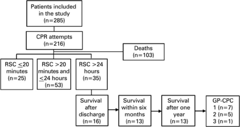 ABSTRACT Objective: To describe neurological status and associated factors of survivors after cardiac arrest, upon discharge, and at 6 and 12 month follow-up. Methods: A cohort, prospective, descriptive study conducted in an emergency room. Patients who suffered cardiac arrest and survived were included. A one-year consecutive sample, comprising 285 patients and survivors (n=16) followed up for one year after discharge. Neurological status was assessed by the Cerebral Performance Category before the cardiac arrest, upon discharge, and at 6 and 12 […]