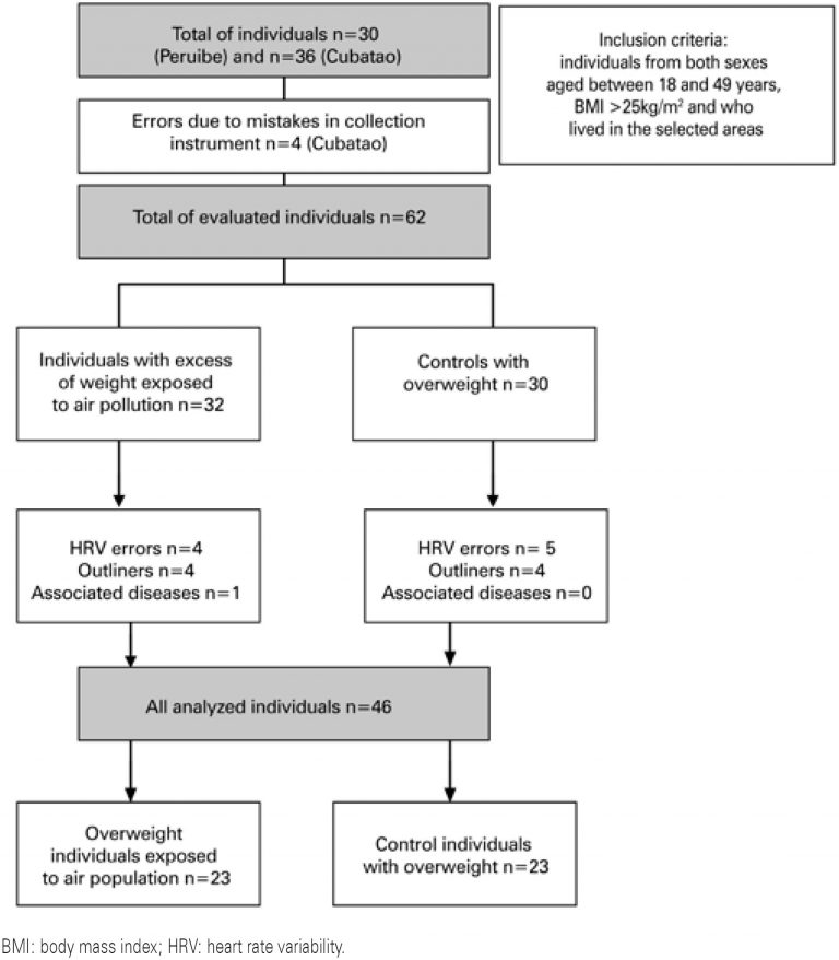ABSTRACT Objective: To analyze the effect of air pollution on heart rate variability in overweight individuals. Methods: A total of 46 adult individuals, both sexes, aged between 18 and 49 years and with body mass index >25kg/m2 were analyzed. All volunteers were students from public schools of two cities in the state of São Paulo. The clinical, demographic and anthropometric data of each individual, as well as heart rate variability through time domain, geometric and frequency indices were collected. For […]