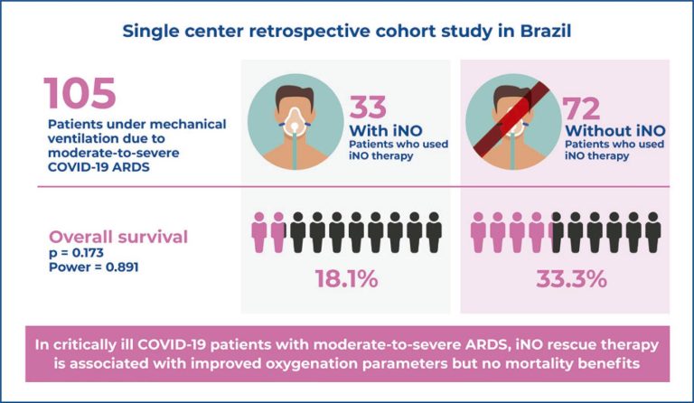 Highlights Acute respiratory distress syndrome is a severe presentation of COVID-19 without effective treatment despite intensive research. Inhaled nitric oxide is a vasodilator that has been studied in patients with acute respiratory distress syndrome COVID-19 yielding contradictory results. The use of inhaled nitric oxide rescue therapy in critically ill patients with COVID-19 experiencing moderate-to-severe acute respiratory distress syndrome was significantly associated with an improvement in oxygenation parameters with no difference in mortality. ABSTRACT Objective: To evaluate the responsiveness of COVID-19 […]