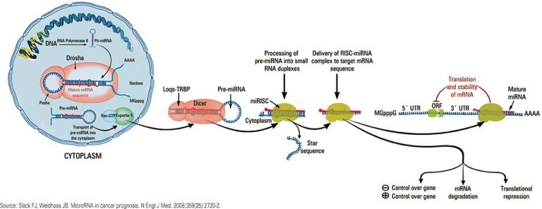 ABSTRACT MicroRNAs are small RNA molecules that regulate gene expression in cells. These small molecules comprise 17 to 25 nucleotides and are able to recognize target messenger RNAs by sequence complementarity and regulate their protein translation. Different microRNAs are expressed in all human cells. There is over 2,500 microRNAs described in humans that are involved in virtually all biological processes. Given their role as gene expression regulators, these molecules have been widely investigated and are thought to be associated with […]