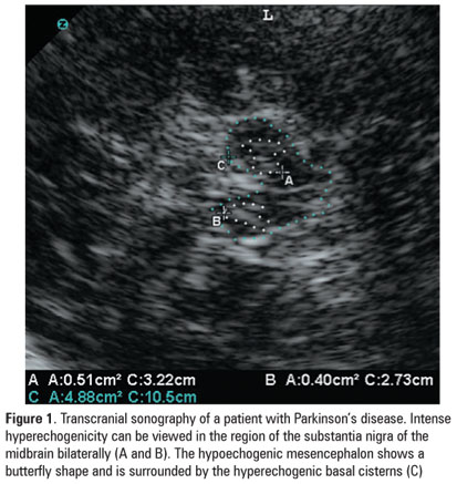 Transcranial sonography has become a useful tool in the differential diagnosis of parkinsonian syndromes. This is a non-invasive, low cost procedure. The main finding on transcranial sonography in patients with idiopathic Parkinson’s disease is an increased echogenicity of the mesencephalic substantia nigra region. This hyperechogenicity is present in more than 90% of cases, and reflects a dysfunction in the dopaminergic nigrostriatal pathway. This study discussed how the hyperechogenicity of the substantia nigra may facilitate the differential diagnosis of parkinsonian syndromes.