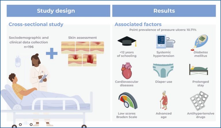 Highlights Excess moisture can lead to maceration and contribute to skin breakdown. Superficial pressure ulcers were the most common and can be easily prevented. Healthcare professionals should be aware of PU risk factors, evaluate skin daily, and offer prevention. ABSTRACT Objective: To estimate the point prevalence of and risk factors associated with the development of pressure ulcers at a university hospital in Brazil. Methods: This study was conducted on 196 participants using a structured questionnaire, physical examination of the skin, […]