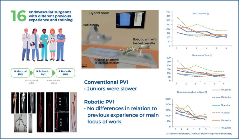 Highlights ■ The learning curves for robotic peripheral arterial interventions were short, with optimal procedure and fluoroscopy times and radiation emission achieved after the 3rd procedure. ■ There were no differences in learning curves in relation to previous experience or main focus of work. ABSTRACT Objective: This study tests a suitable model for training robot-assisted peripheral vascular interventions and examines the learning curves of endovascular surgeons with different levels of previous experience and main focus of work, analyzing procedure time, […]