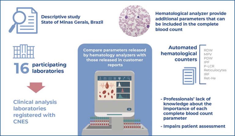 Highlights Recent automated hematology analyzers provide additional parameters to the complete blood count. Sixteen laboratories of a medium-sized municipality of Minas Gerais were interviewed. No laboratory released all parameters obtained from the hematological analyzers to the customer. Expanding our knowledge and implementing these parameters in complete blood counts is essential. ABSTRACT Objective: This study aimed to compare the hematological parameters released by hematological analyzers with those released in customer reports. Methods: We conducted a descriptive study in the laboratories of […]
