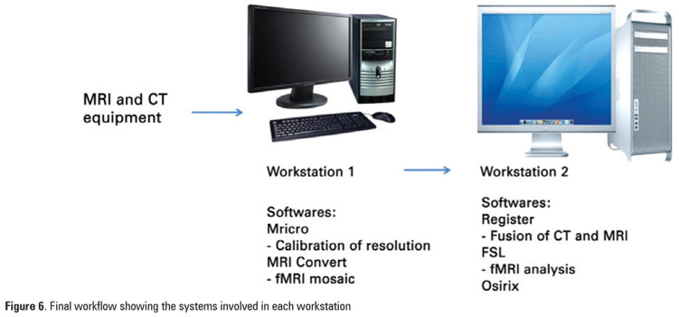 OBJECTIVE: To evaluate tools for the fusion of images generated by tomography and structural and functional magnetic resonance imaging. METHODS: Magnetic resonance and functional magnetic resonance imaging were performed while a volunteer who had previously undergone cranial tomography performed motor and somatosensory tasks in a 3-Tesla scanner. Image data were analyzed with different programs, and the results were compared. RESULTS: We constructed a flow chart of computational processes that allowed measurement of the spatial congruence between the methods. There was […]