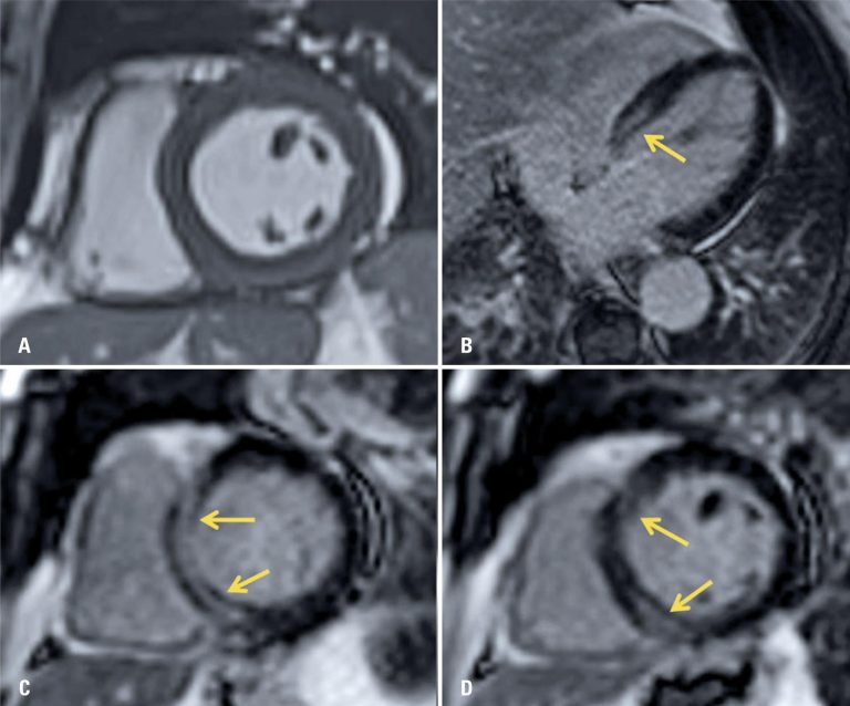 ABSTRACT A male patient with flu-like symptoms and tomography and laboratory diagnosis of severe acute respiratory syndrome. He developed acute cardiac dysfunction during admission and was submitted to a cardiac magnetic resonance imaging examination, which confirmed acute myocarditis, indicating cardiac involvement by coronavirus disease 2019. A review and discussion about coronavirus disease 2019-related cardiac manifestations are reported, focusing on the imaging findings to make diagnosis.