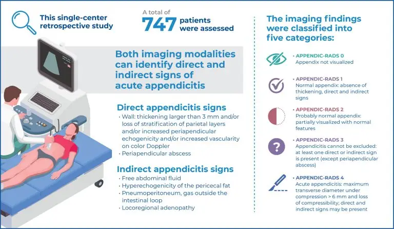 Highlights ■ Imaging plays a fundamental role in the diagnosis of acute appendicitis. ■ The study highlights ultrasound’s effectiveness in diagnosing appendicitis. ■ APPENDIC-RADS efficiently standardizes the ultrasound evaluation of appendicitis. ■ Using APPENDIC-RADS may enhance communication and optimize medical practices. ABSTRACT Objective: Abdominal ultrasonography is widely used to evaluate suspected cases of appendicitis. Objective descriptions of the direct and indirect signs of appendicitis result in varied assessments of its likelihood. This study introduces the Appendix Imaging Reporting and Data […]