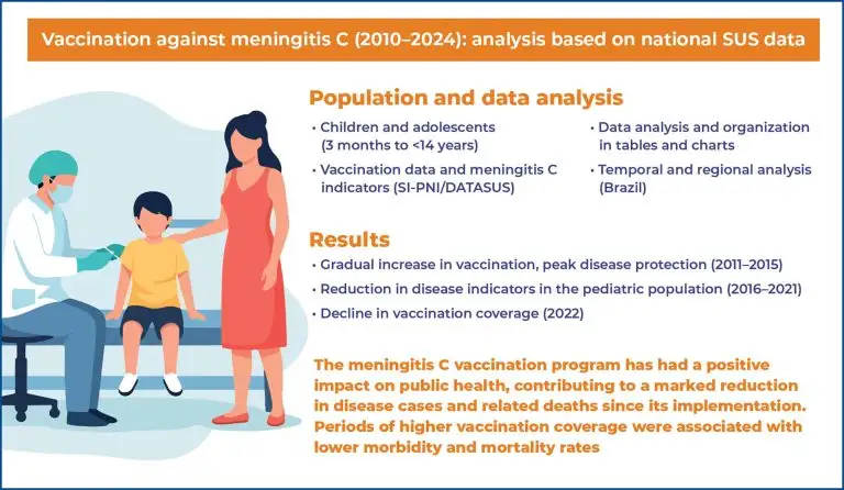 Highlights ■ High vaccine coverage correlated with sharp declines in the incidence of pediatric meningitis C. ■ The incidence fell by 98% by 2021 following national introduction of the MenC vaccine. ■ Vaccine coverage dropped after 2015, aligned with the rising cases observed in 2022. ■ MenC vaccination significantly reduced morbidity and mortality nationwide. ABSTRACT Objective: To analyze the correlation between vaccination coverage against meningitis C and epidemiological indicators of morbidity and mortality associated with the disease in Brazilian pediatric […]