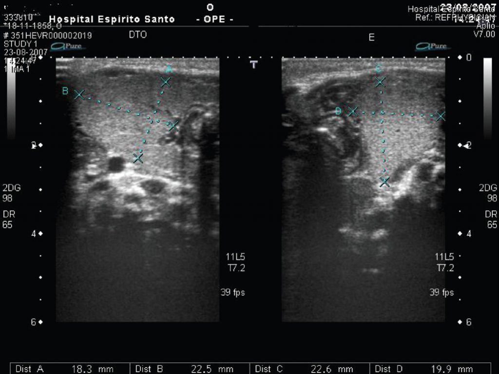Congenital goiter is a rare cause of neonatal neck mass and may result from a fetal defectin synthesis of thyroxine, or administration of antithyroid drugs or iodides during pregnancy. The thyroid dysfunction often accompanies it. This report describes a case of a male term newborn with congenital goiter and primary hypothyroidism. Hormonal replacement treatment was started leading to normal levels of free thyroxine and triiodothyronine. In face of a maternal negative investigation, dyshormonogenesis was considered to be the most probable cause of hypothyroidism.