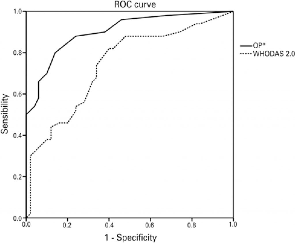 The Obesity-related Problems scale was able to differentiate obese from non-obese individuals with higher accuracy than WHODAS 2.0, correlating with this scale and with body mass index. The factor analysis determined a two-dimensional structure, which was confirmed with χ2/df=1.81, SRMR=0.05, and CFI=0.97. The general a coefficient was 0.90 and the inter-item intra-class correlation, in the reapplication, ranged from 0.75 to 0.87.