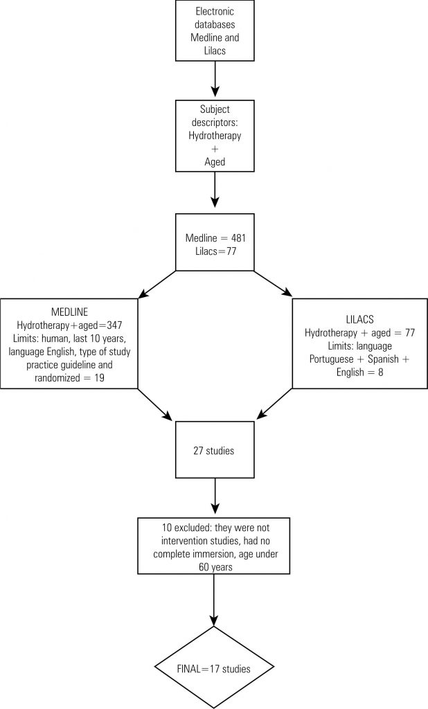A qualitative systematic review of electronic databases MEDLINE and LILACS, with the topic index terms: “hydrotherapy,” “homes for the aged or residential facilities,” and “aged. In light of the lack of studies carried out on the institutionalized population, we opted for reviewing literature on the effectiveness of this modality of physical therapy treatment on the non-institutionalized elderly population in order to produce knowledge that can be critically analyzed according to its potential applicability for the institutionalized population. The methodological quality of the studies was assessed using the Delphi listing.