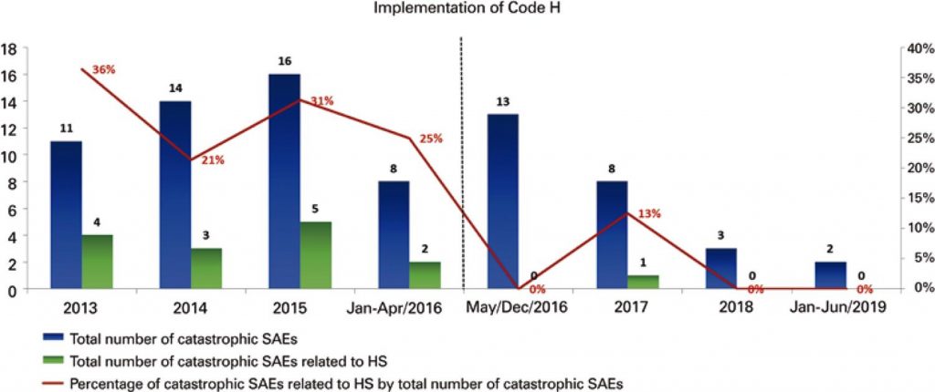 Code H is an example of a value-based medicine and precision medicine project by delivering comprehensive and multidisciplinary care, in addition to point-of-care testing introduced in clinical practice, optimizing patient safety and care practices at the hospital. Furthermore, it will be possible to minimize the risk of lawsuits for the hospital and physicians, as well as rationalizing resources with benefits for administrators and payers.
