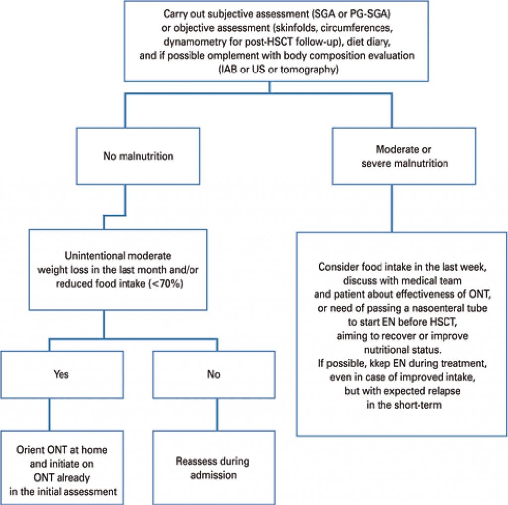 Flow chart for decision-making in nutritional assessment before hematopoietic stem cell transplant (HSCT)