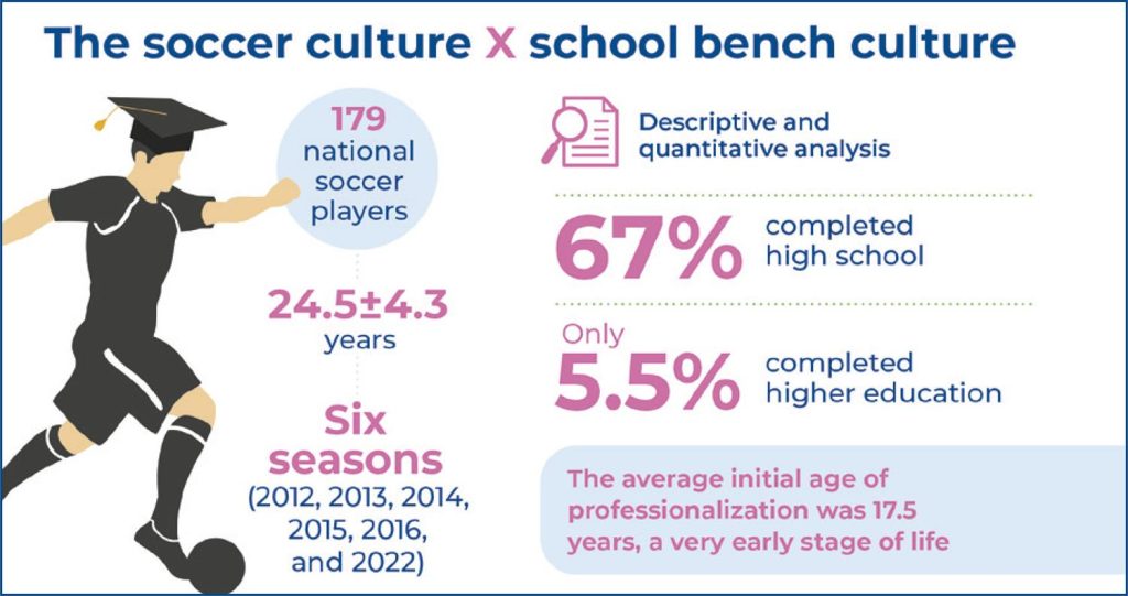 As the soccer culture in Brazil is more popular than schooling, this study reflected on the formal education levels of soccer (football) players through descriptive and quantitative analyses.