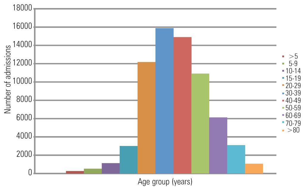 To estimate costs associated to hospital treatment of urinary lithiasis in the Brazilian public health system as well as to evaluate demographic and epidemiological data referred to hospital admissions in the Brazilian public health system (or unified health care system).
