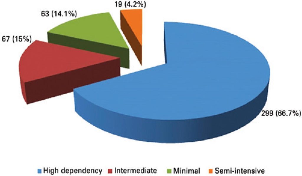 The average daily workload was 108.7 hours and the average amount of time spent on nursing care per patient was 7.9 hours. The nurse-patient ratio was 1:2.6.