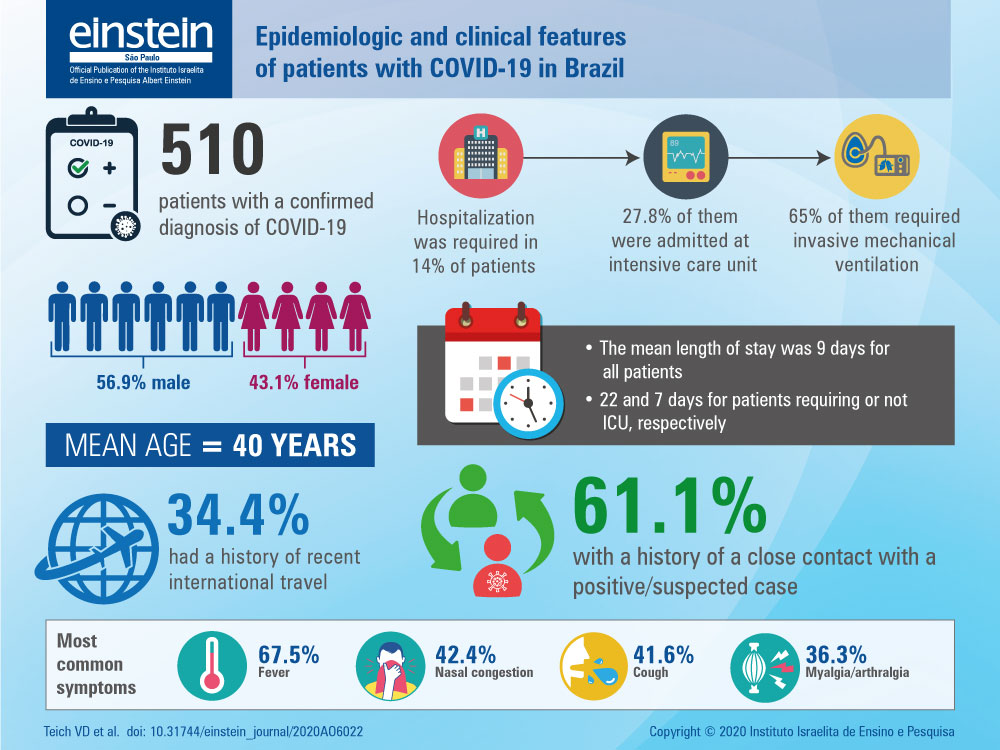 This study describes epidemiological and clinical features of patients with confirmed infection by SARS-CoV-2 diagnosed and treated at Hospital Israelita Albert Einstein , which admitted the first patients with this condition in Brazil.