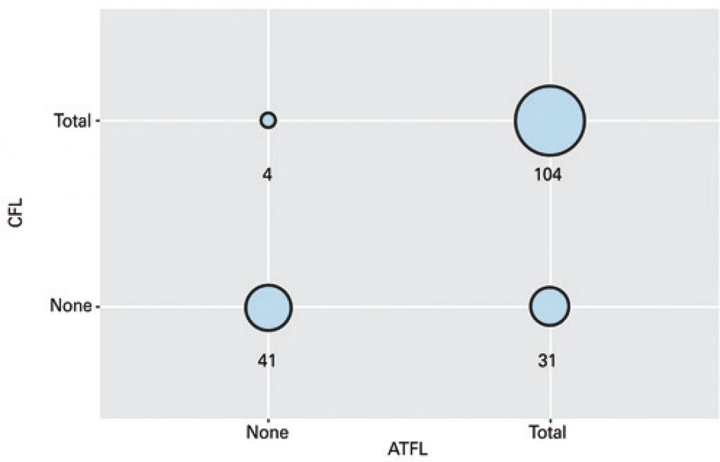 There was a high rate of injuries secondary to ankle sprains. We found correlation between lateral ligament injuries and syndesmosis and deltoid injuries. We did not observe a relation between deltoid and syndesmosis injuries or between lateral ligamentous and subtalar injuries. Similarly, no relation was found between ankle and midfoot injuries.