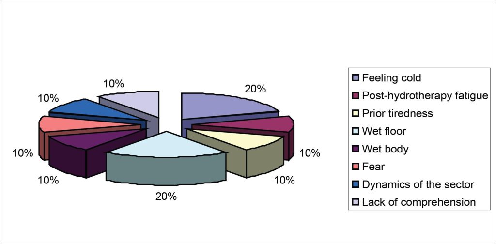 Ten stroke patients aged between 5 and 85 years were evaluated by means of the Timed Up and Go test, which contains some items, such as balance, walking speed, changing directions, and standing up from a seated position. The study patients performed the test before and after each hydrotherapy session (total of 12 sessions). Each individual was compared to him/ herself both short-term (pre- and post-therapy) and long-term (after 12 therapy sessions).