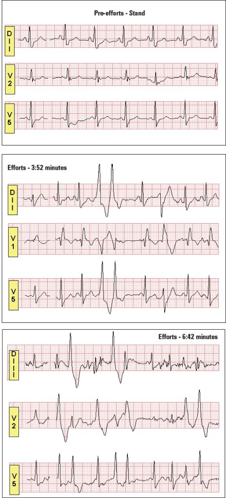 Exercise-induced ventricular arrhythmia was observed in 7% of sample and it was associated with lower oxygen saturation during exercise.