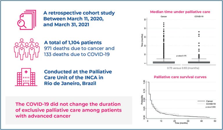 Death due to COVID-19 did not modify the duration of exclusive palliative care among patients with advanced cancer.