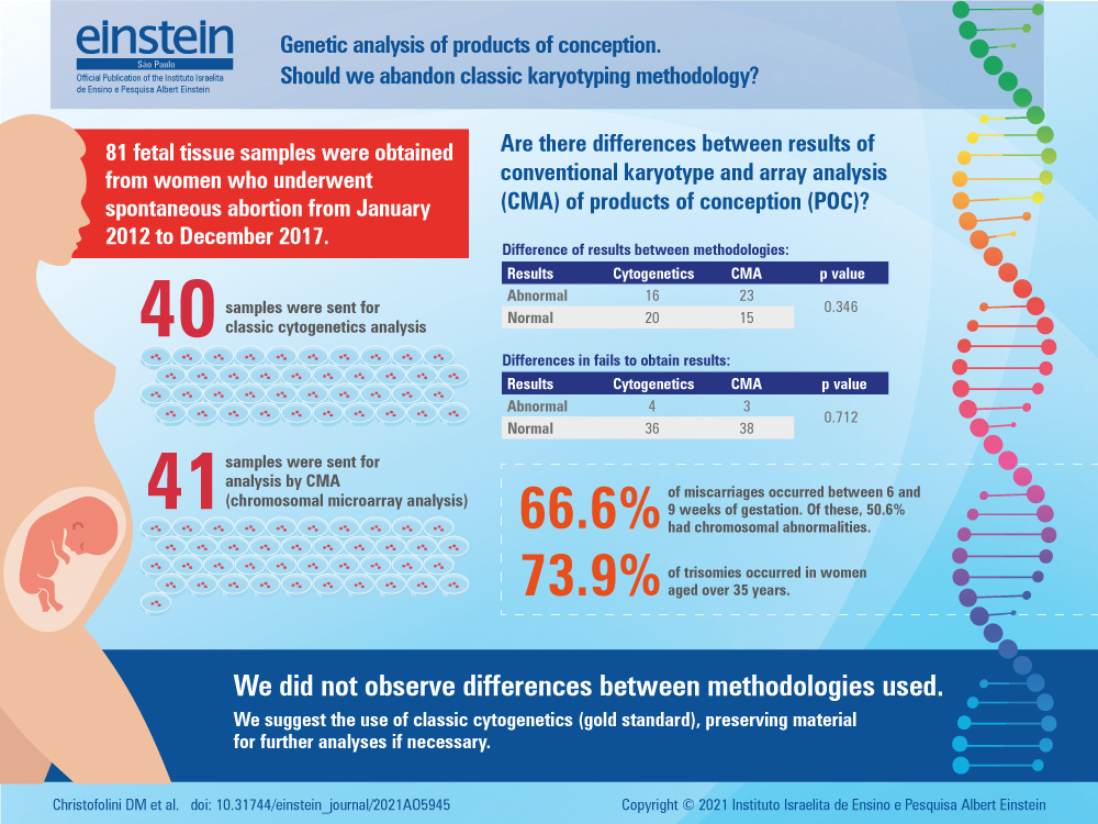 Retrospective non-randomized analysis of results obtained from product of conception samples submitted to genetic evaluation, from 2012 to 2017. The evaluations were performed using cytogenetics and/or chromosomal microarray analysis or arrays.
