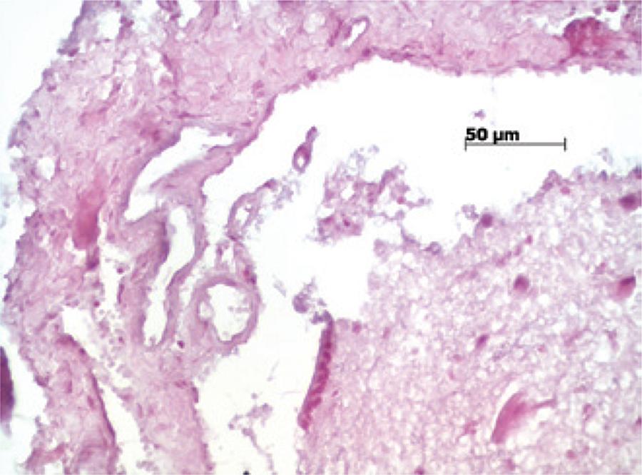 Fibrosis was significantly different between simple suture and silicon mesh (p=0.005) and between simple suture and mesh with suture (p=0.015), showing that fibrosis is more intense when a foreign body is used in the repair. Bovine membrane was significantly different from mesh plus suture (p=0.011) regarding vascularization. Inflammation was significantly different between simple suture and bovine collagen membrane.