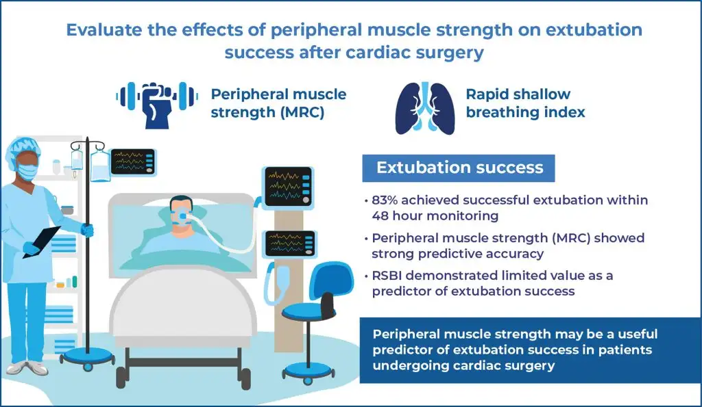Peripheral muscle strength may be a useful predictor of extubation success in patients undergoing cardiac surgery.