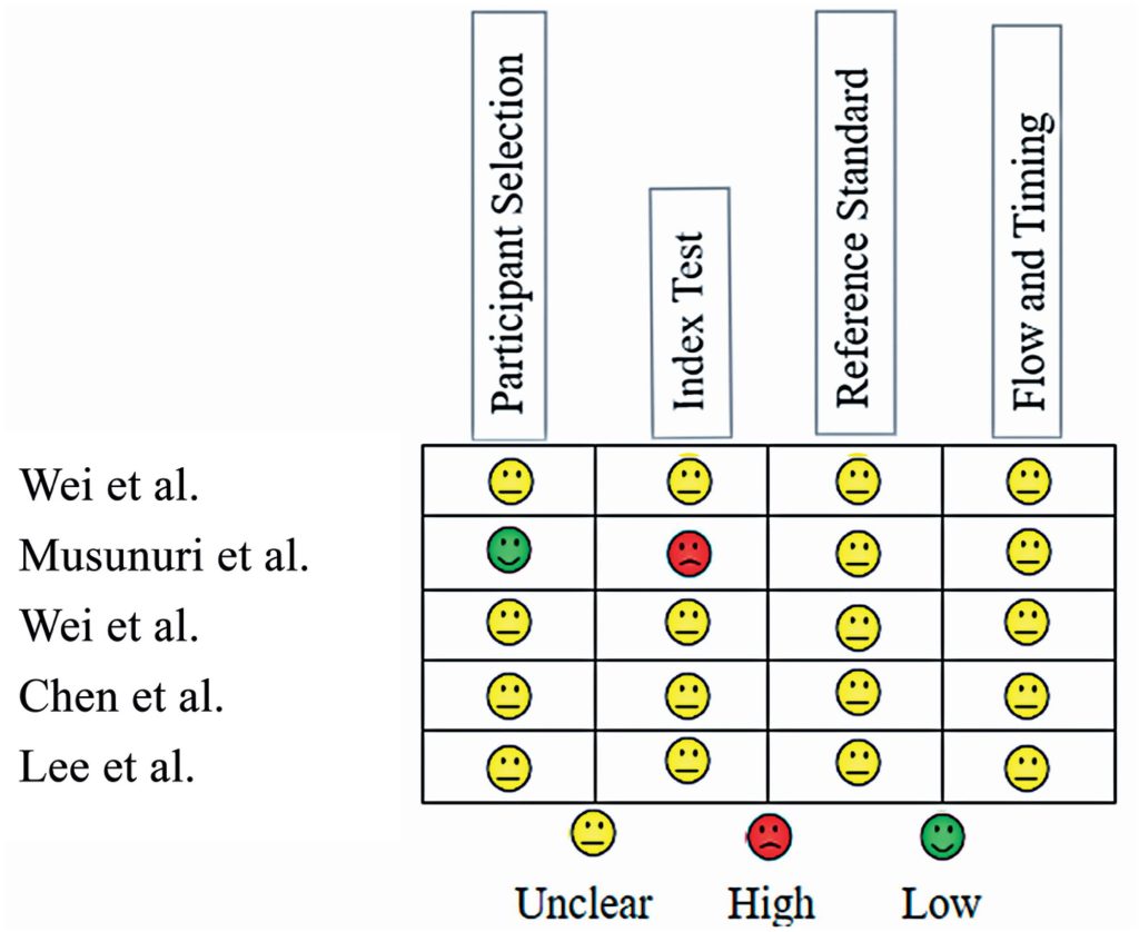 Of the 806 studies identified, five met the inclusion criteria, encompassing a total of 2,424 patients. The pooled sensitivity and specificity of the neutrophil-to-lymphocyte ratio for predicting mortality were 0.58 (95%CI=0.51–0.65) and 0.65 (95%CI=0.59–0.71), respectively. The AUC was 0.65, suggesting moderate predictive power. Significant heterogeneity was observed across studies owing to differences in neutrophil-to-lymphocyte ratio cutoff points, patient populations, and outcomes analyzed.