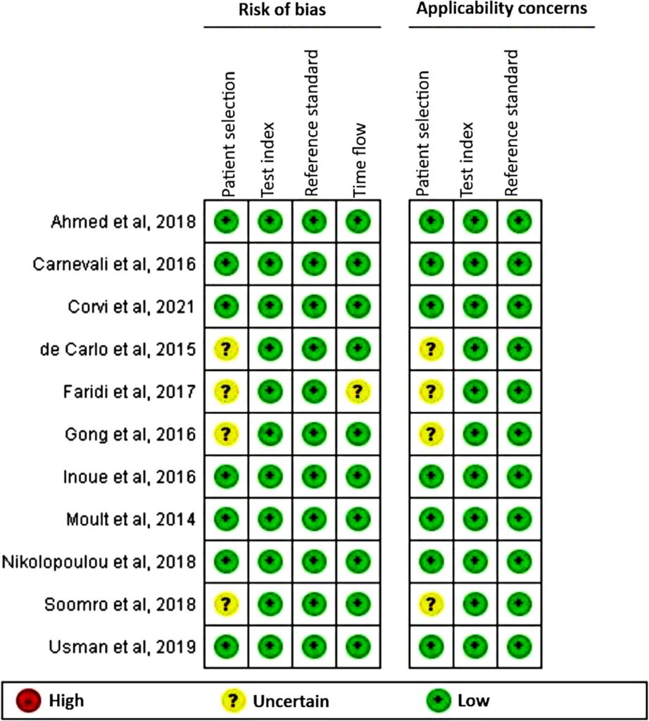 Eleven articles were included in the systematic review. The patients’ mean age ranged from 58.5 to 79.7 years. The sensitivity ranged from 50.0% to 94.0%, and the specificity ranged from 67.6% to 100.0%. The risk of bias was low, and the methodological quality of the studies was good, suggesting that optical coherence tomography angiography holds promise for the diagnosis of choroidal neovascularization.
