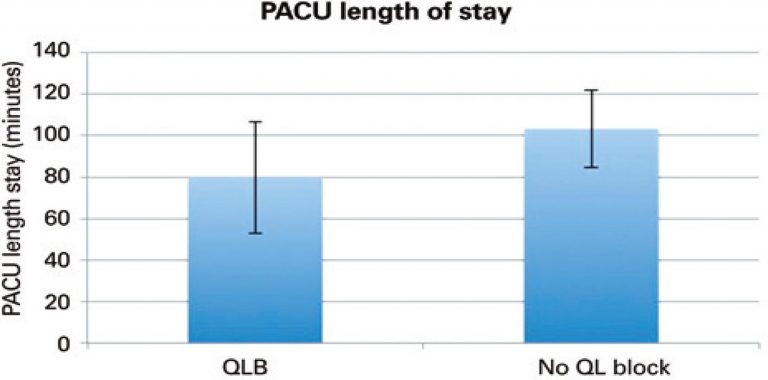 Preoperative posterior quadratus lumborum block for primary total hip arthroplasty is associated with decreased opioid requirements up to 48 hours, decreased Visual Analog Scale pain scores up to 12 hours, and shorter post-anesthesia care unit length of stay. Level of evidence: III