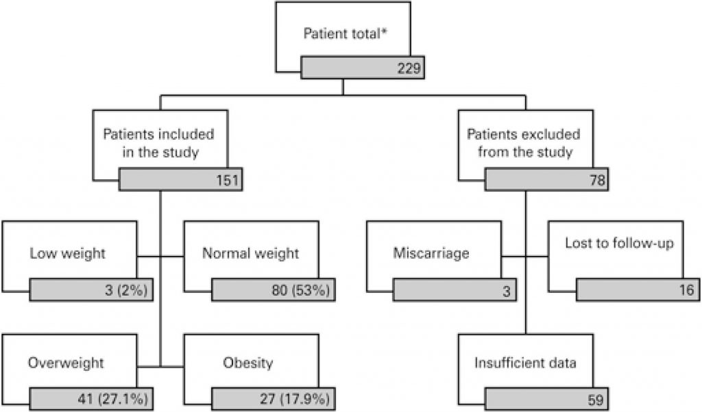 A retrospective study was carried out with 151 patients seen at the Healthy Gestation Program of Hospital Israelita Albert Einstein . Data were collected from a medical chart review of the patients seen between March 2015 and March 2016.
