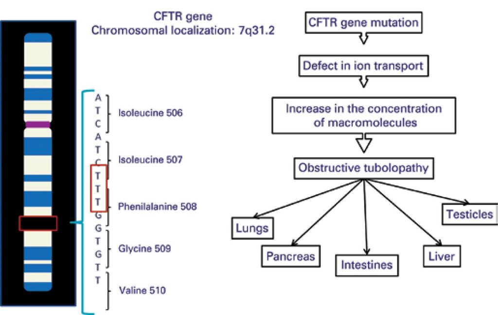 Cystic fibrosis is an autosomal recessive disorder caused by mutations in the cystic fibrosis transmembrane conductance regulator gene. This disorder produces a variable phenotype including lung disease, pancreatic insufficiency, and meconium ileus plus bilateral agenesis of the vas deferens causing obstructive azoospermia and male infertility. Preimplantation genetic diagnosis is an alternative that allows identification of embryos affected by this or other genetic diseases. We report a case of couple with cystic fibrosis; the woman had the I148 T mutation and the man had the Delta F508 gene mutation. The couple underwent in vitro fertilization, associated with preimplantation genetic diagnosis, and with subsequent selection of healthy embryos for uterine transfer. The result was an uneventful pregnancy and delivery of a healthy male baby.