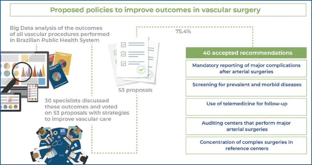 This was a descriptive, qualitative, and cross-sectional survey involving 30 specialists of the Hospital Israelita Albert Einstein via Zoom. The outcomes of vascular procedures performed in the Public Health System extracted through Big Data analysis were discussed, and 53 potential strategies to improve public vascular care to improve public vascular care.