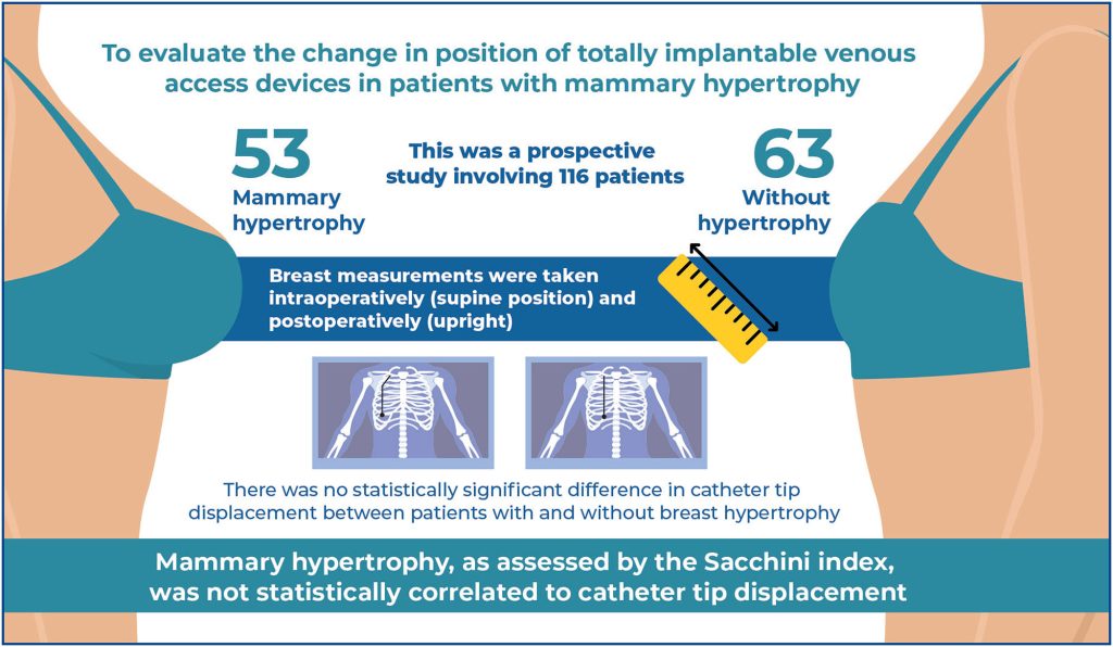 ■ Mammary hypertrophy was not associated with postoperative totally implantable venous access device catheter tip displacement.