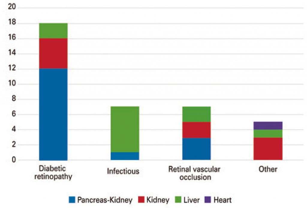 Retinal changes were either related to preexisting conditions, mainly diabetic retinopathy, or developed postoperatively as a complication of the surgical procedure, or as an infection related to the immunosuppressive status, or due to drug toxicity. These patients may present with complex ophthalmological changes and should be carefully evaluated prior to surgery and further followed by an ophthalmologist skilled in the management of diabetic retinopathy and posterior pole infections.