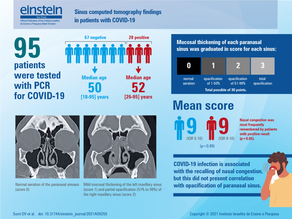 To analyze computed tomography scans of paranasal sinuses of a series of patients with coronavirus disease 2019, and correlate the findings with the disease.