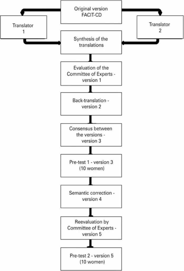 To translate and perform the cultural adaptation of the tool Functional Assessment of Chronic Illness Therapy – Cervical Dysplasia (FACIT-CD) to the Portuguese language.
