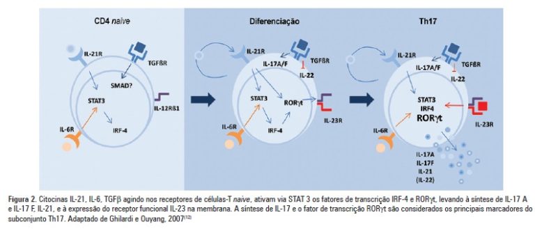 A interleucina 17 humana foi descrita pela primeira vez em 1995, como uma nova citocina produzida principalmente por células T CD4+ ativadas, que estimulam a secreção de IL-6 e IL-8 por fibroblastos humanos, além de aumentar a expressão de ICAM-1. Vários autores relataram que a IL-17A tem um papel na proteção de organismos contra bactérias extracelulares e fungos devido à capacidade de recrutar neutrófilos para as áreas de infecção, evidenciando um papel patológico em vários modelos de doenças autoimunes, como […]