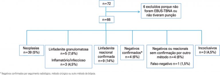 Palavras-chave: Aspiração por agulha fina guiada por ultrassom endoscópico/métodos; Biópsia por agulha fina; Broncoscopia; Linfonodos; Mediastino; Ultrassonografia de intervenção