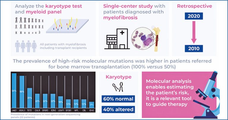 Highlights Karyotype was normal in 60% of patients and altered in 40%. The variants most often detected in the myeloid panel were: JAK2 (54%), ASXL1 (50%), TET2 (31%), and CALR (22%). The median follow-up of transplant patients was 2.4 years and the two-year overall survival was 80%. ABSTRACT Objective To analyze the karyotype test and myeloid panel with next-generation sequencing findings in patients with myelofibrosis, and to compare transplant characteristics in patients referred for bone marrow transplantation. Methods Retrospective, […]
